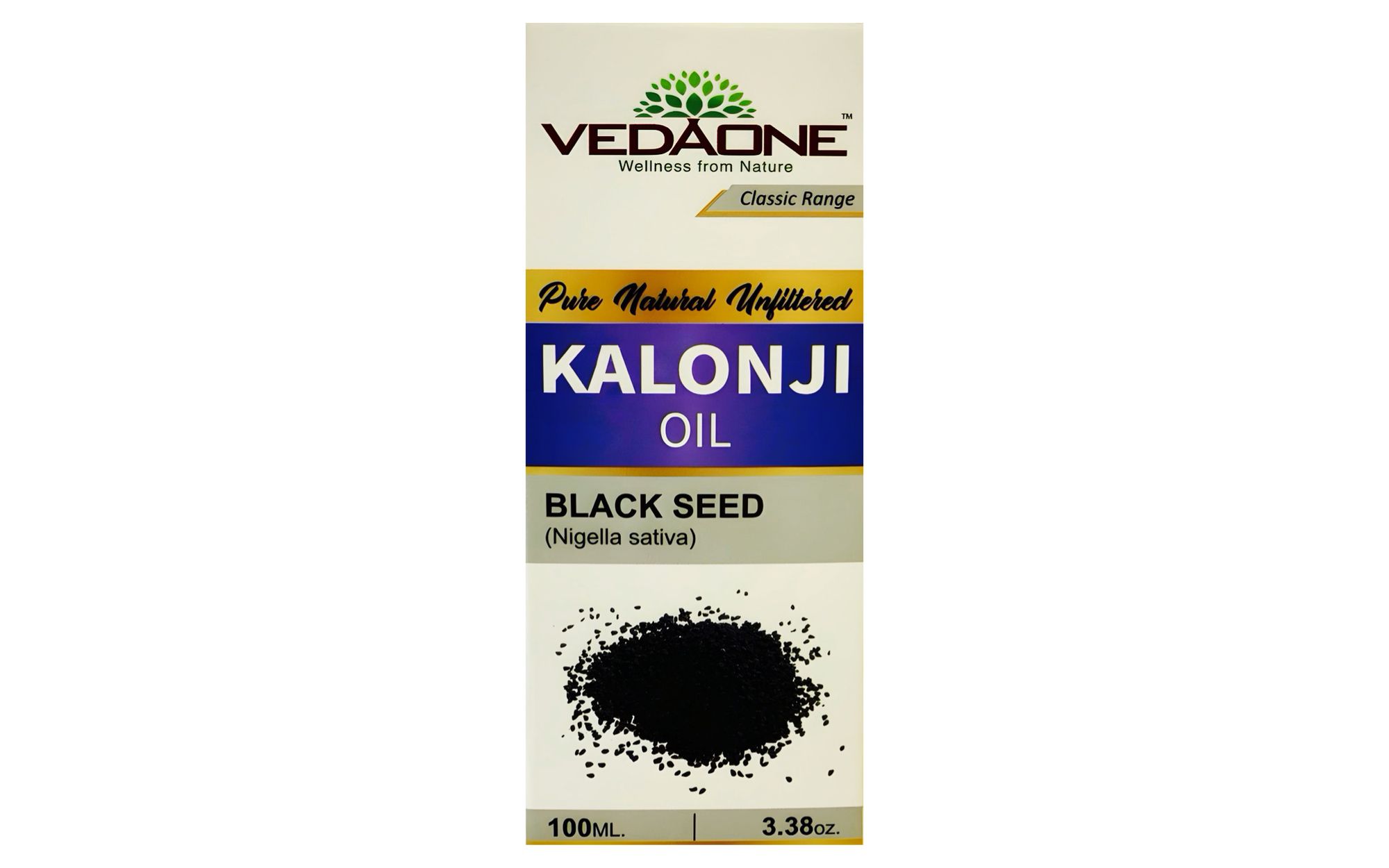 El aceite de Kalonji de la marca Vedaone es un producto natural sin filtrar, elaborado a partir de semillas negras (Nigella sativa). Esta presentación forma parte de la línea “Classic Range” y está diseñada para quienes buscan ingredientes tradicionales y versátiles dentro de su estilo de vida natural.